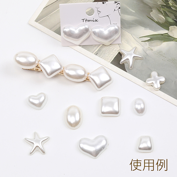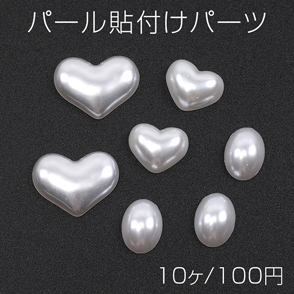 パール貼付けパーツ パールカボション オーバル ハート型 ホワイト