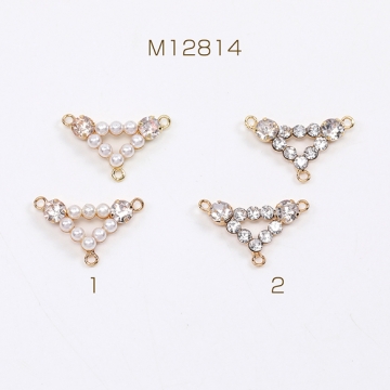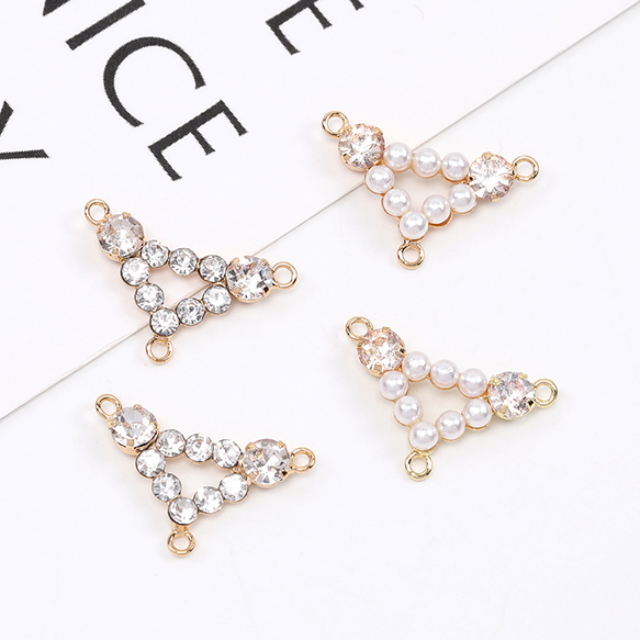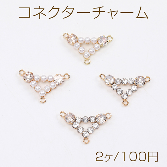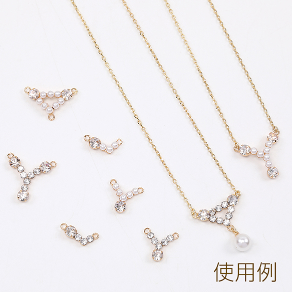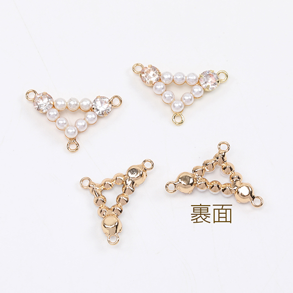 コネクターチャーム パール付き ラインストーン付き 3カン付き ゴールド 12×19mm
