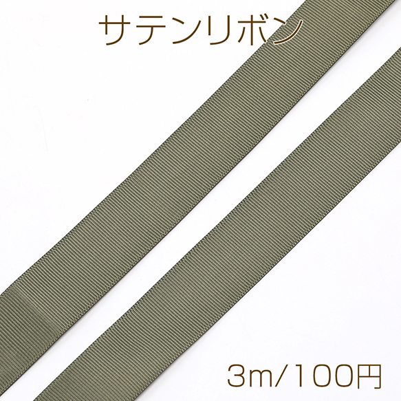 グログランリボン グログランテープ ポリエステルリボン 無地 幅25mm 長さ3m 1カーキ