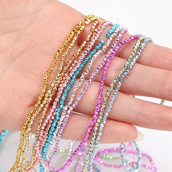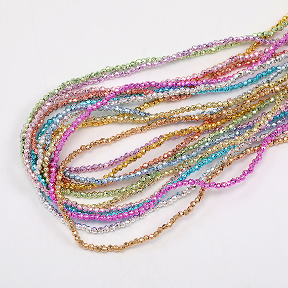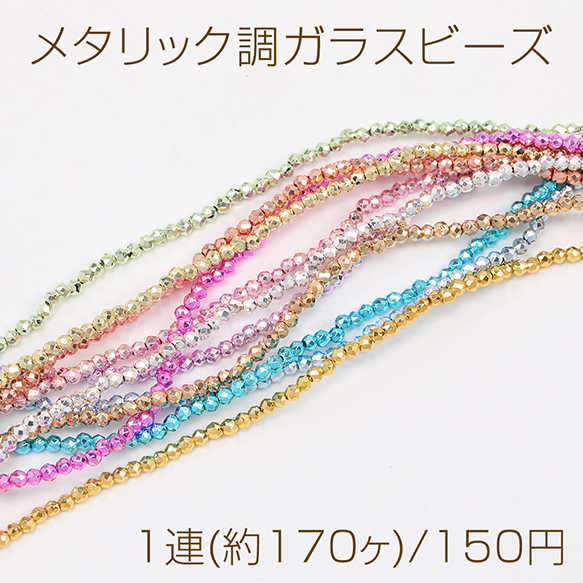 メタリック調ガラスビーズ メッキガラスビーズ 通し穴あり ラウンドカット 2mm