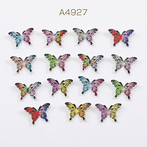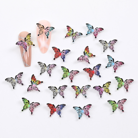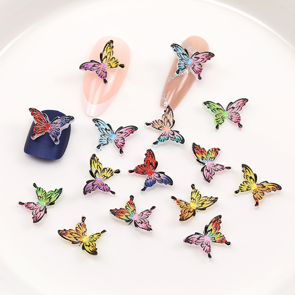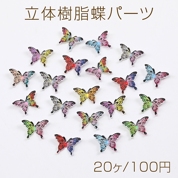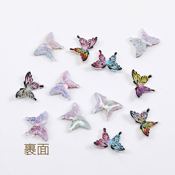 立体樹脂蝶パーツ 樹脂貼付けパーツ ネイルパーツ レジン封入パーツ 蝶 グラデーションカラー ミックスカラー 8×12mm(20ヶ)