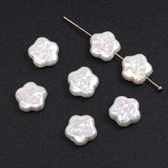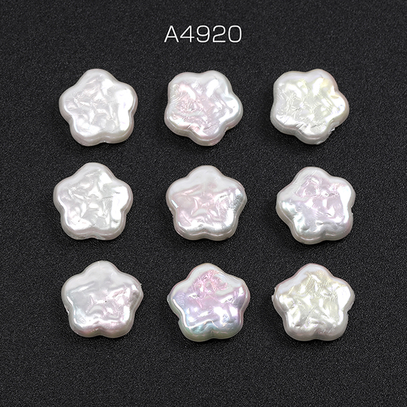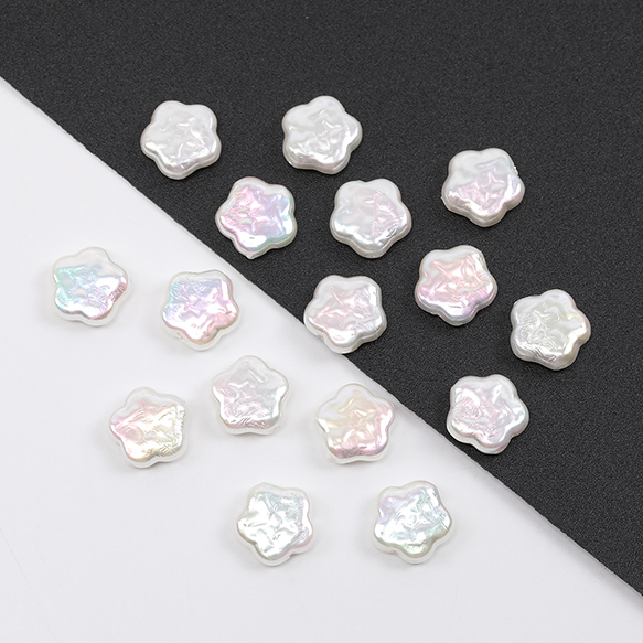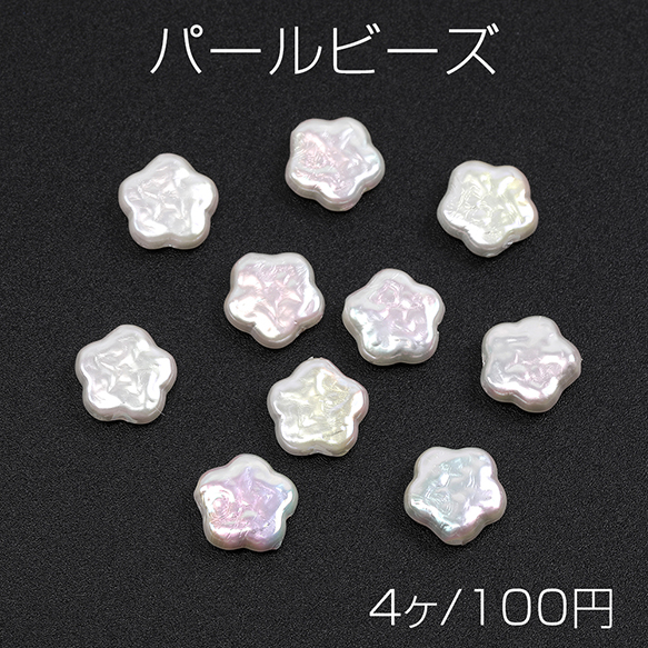 パールビーズ バロック調パールビーズ ABS樹脂製 オーロラカラー加工ホワイト 立体フラワー型 縦穴 11mm(4ヶ)