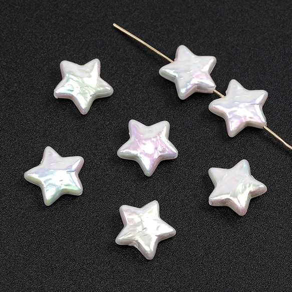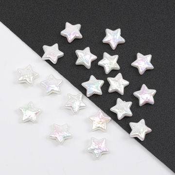 パールビーズ バロック調パールビーズ ABS樹脂製 オーロラカラー加工ホワイト 立体星型 縦穴 11mm(4ヶ)