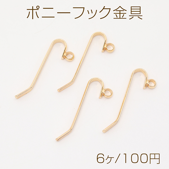ポニーフック金具 カン付き 差し込み式ヘア金具 ゴールド 32mm(6ヶ)