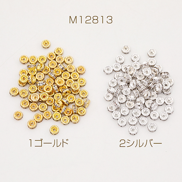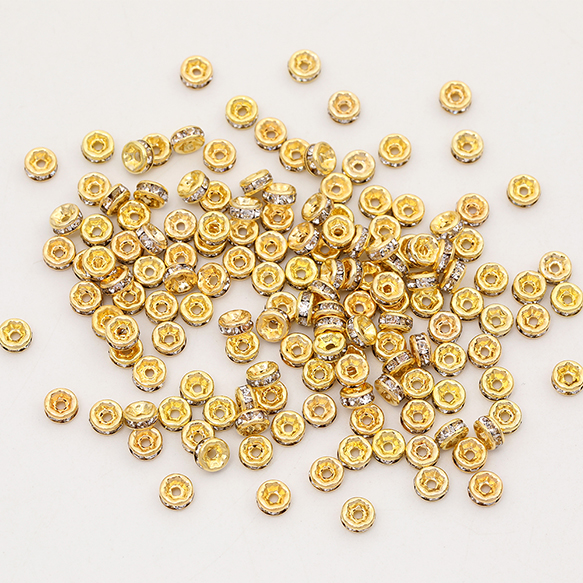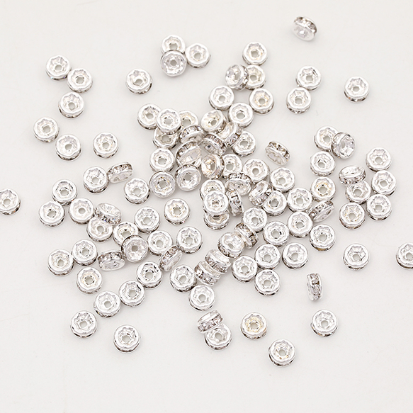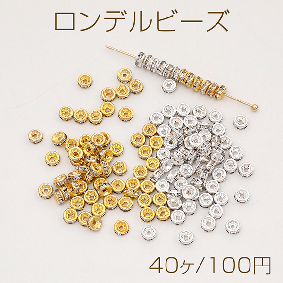 ロンデルビーズ 平型 スペーサービーズ ラインストーン付き 通し穴 4mm(40ヶ)