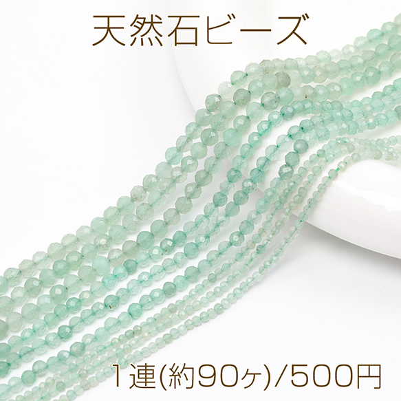 天然石ビーズ 連売り グリーンアベンチュリン ラウンドカット 通し穴あり 4mm 1連(約90ヶ)