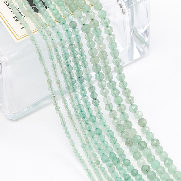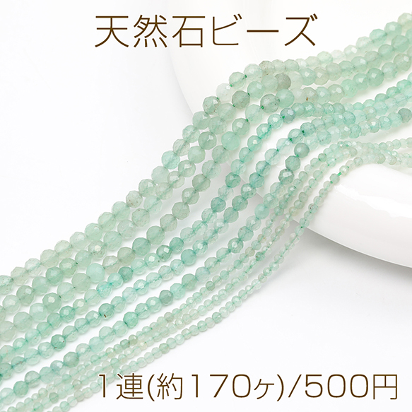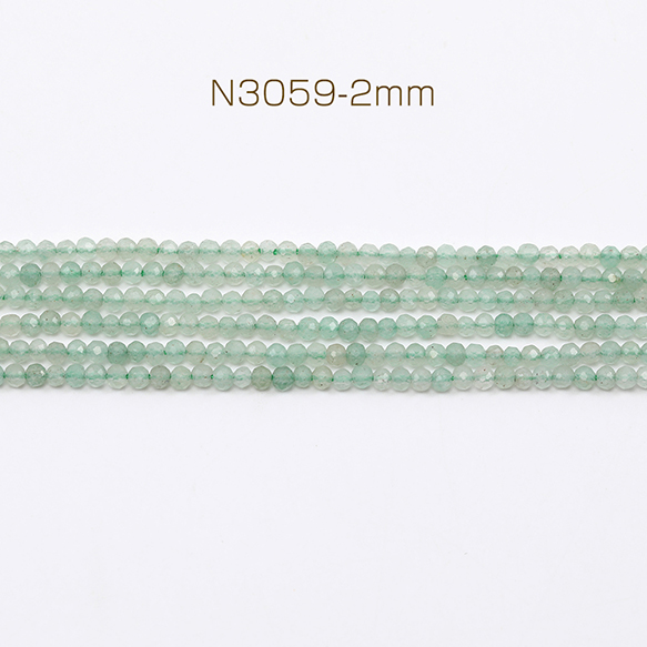 天然石ビーズ 連売り グリーンアベンチュリン ラウンドカット 通し穴あり 2mm 1連(約170ヶ)