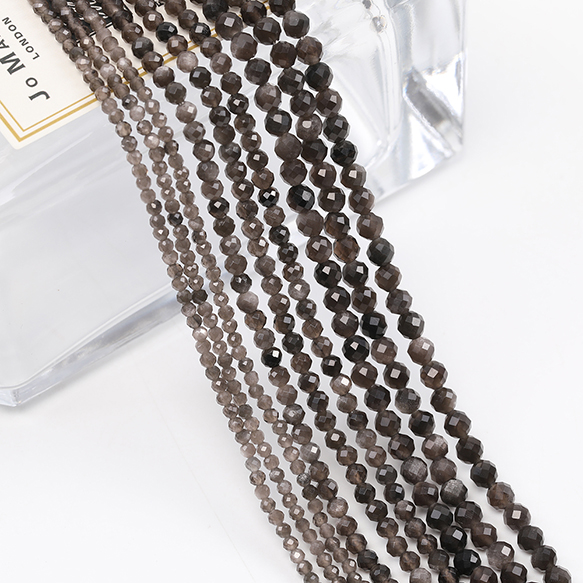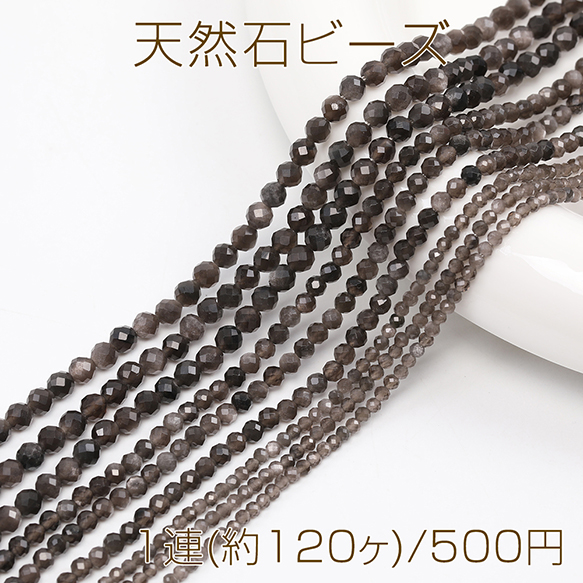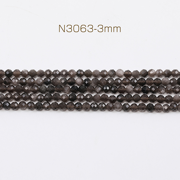 天然石ビーズ 連売り シルバーオブシディアン ラウンドカット 通し穴あり 3mm 1連(約120ヶ)