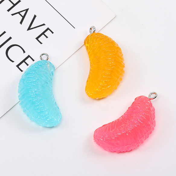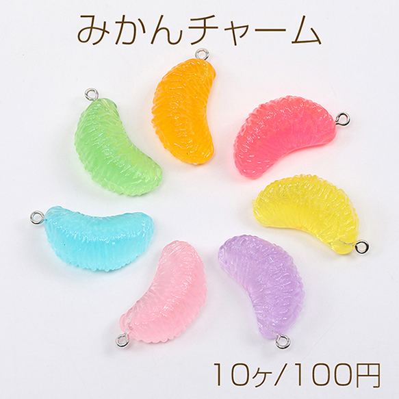 みかんチャーム 樹脂製 リアルみかんパーツ ミカンキーホルダーパーツ 食品サンプル カン付き 18×34mm(10ヶ)