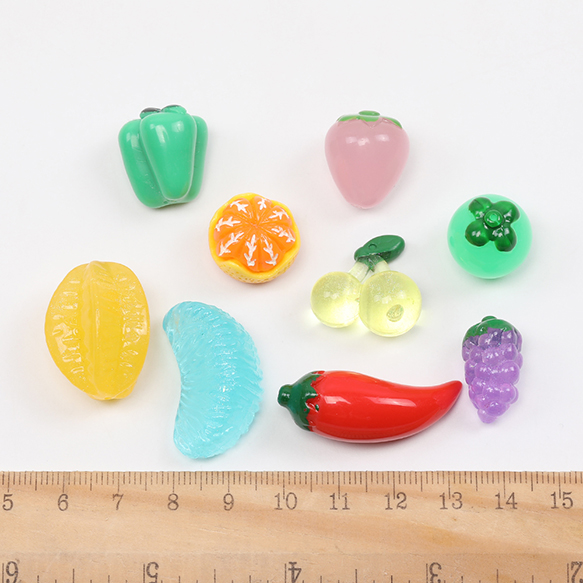 樹脂貼付けパーツ 樹脂カボション 野菜系 果物系 ミックスカラー(10ヶ)