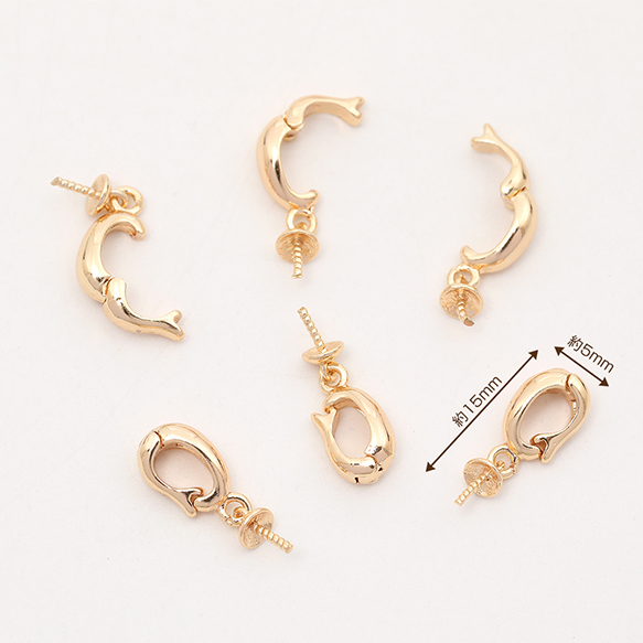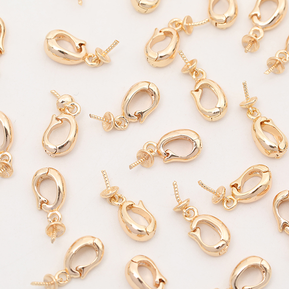 色褪せにくい14KGPゴールドメッキ ワンタッチ開閉式バチカン デザインヒートン付き 5×15mm(1ヶ)