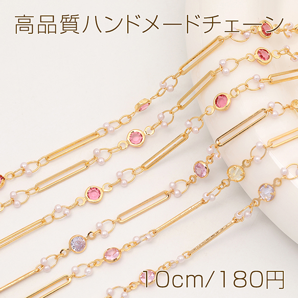 色褪せにくい14KGPゴールドメッキ 高品質ハンドメードチェーン ジルコニア付き