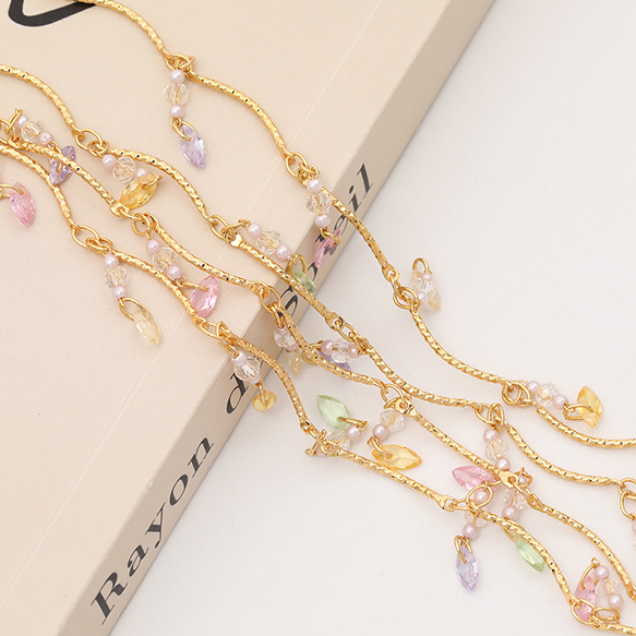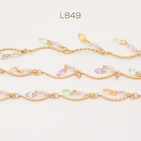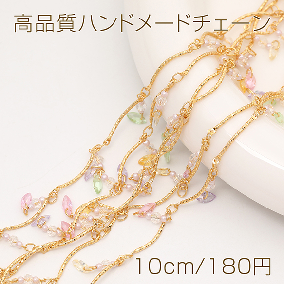 色褪せにくい14KGPゴールドメッキ 高品質ハンドメードチェーン ジルコニア付き(10cm)