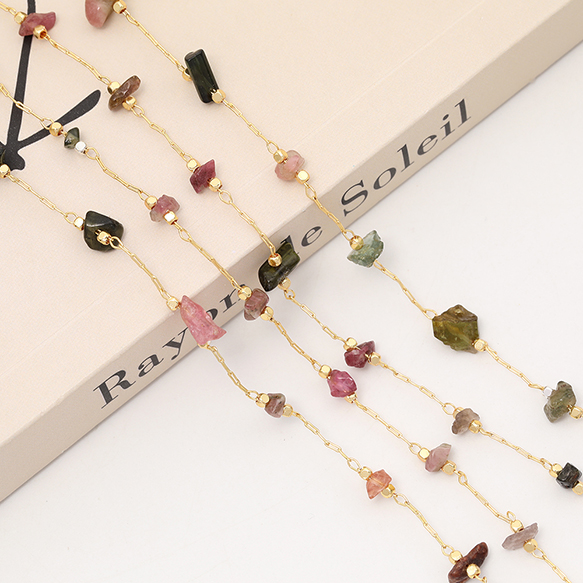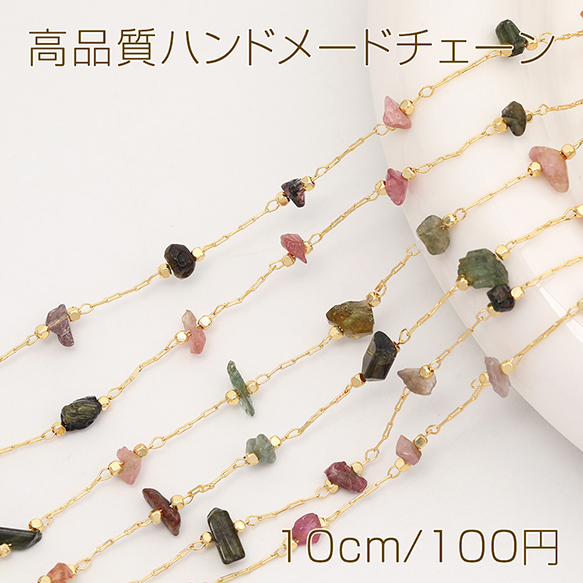 高品質ハンドメードチェーン 天然石チェーン 18Kゴールドメッキ 色落ちしにくい(10cm)