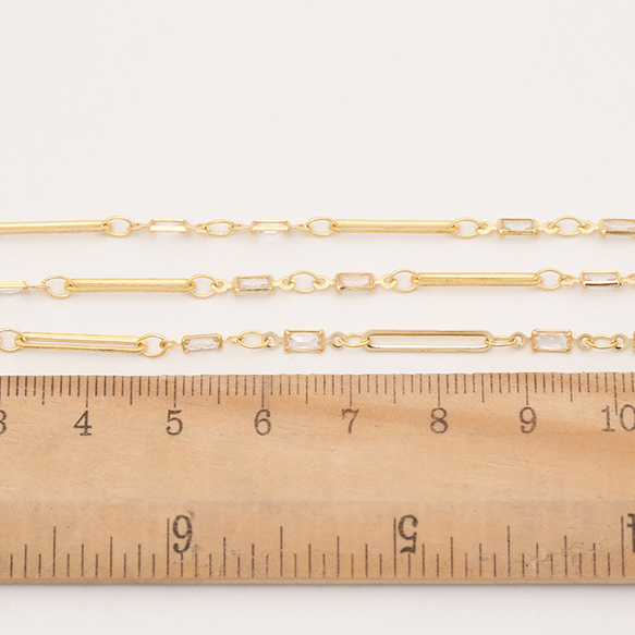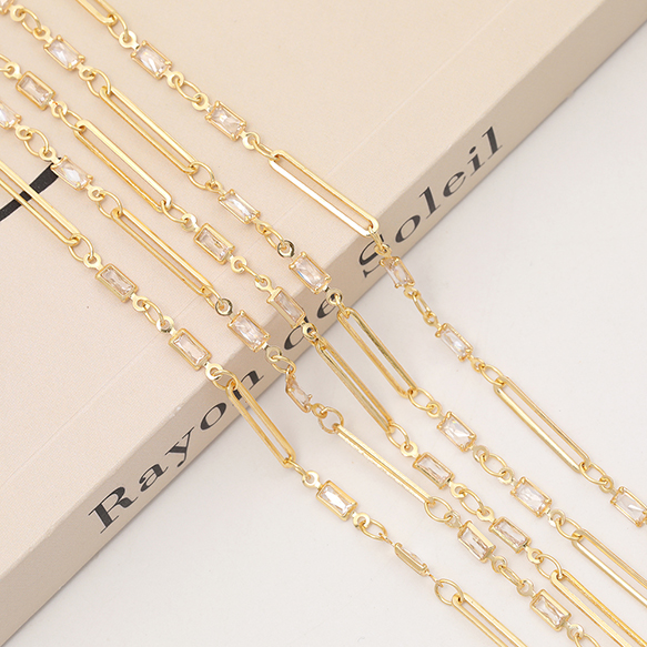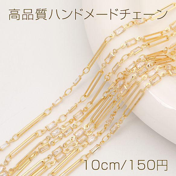 高品質ハンドメードチェーン ジルコニア付き 18Kゴールドメッキ 色落ちしにくい(10cm)