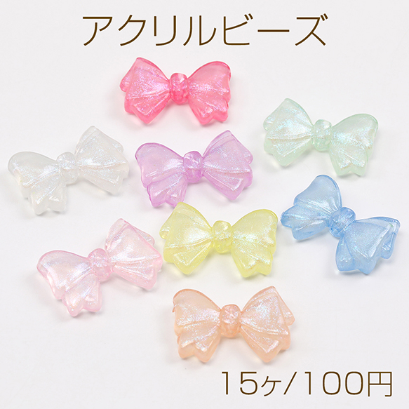 アクリルビーズ リボン ミックスカラー 20×29mm(15ヶ)