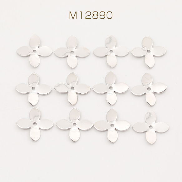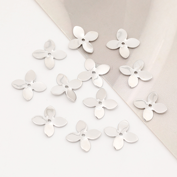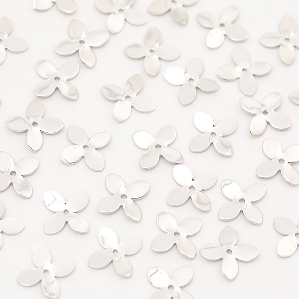 メタルフラワーパーツ ビーズキャップ 花座 座金 四弁花 中心通し穴あり ロジウム 8×11mm(8ヶ)