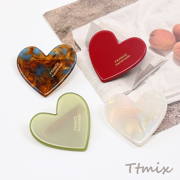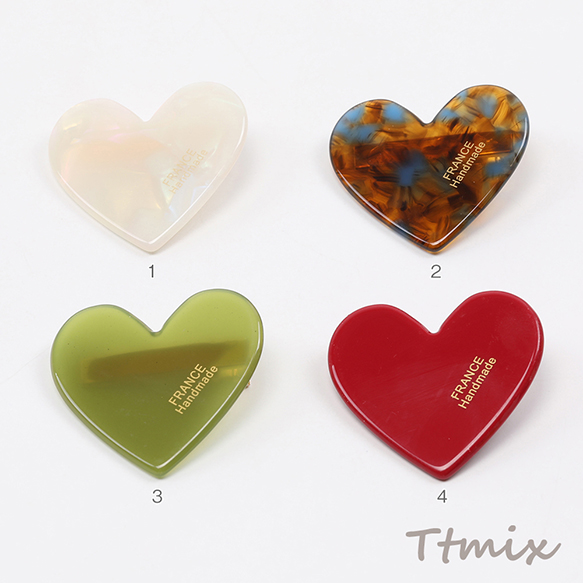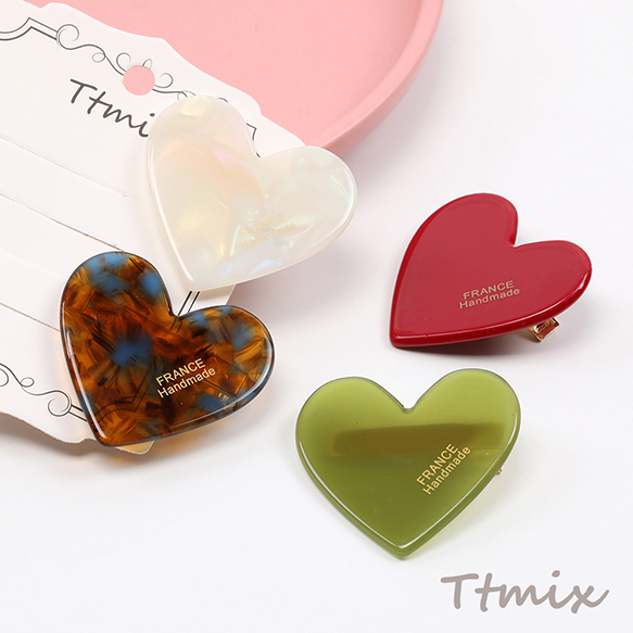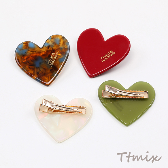 ヘアクリップ アセチ樹脂 ハート型 37×39mm