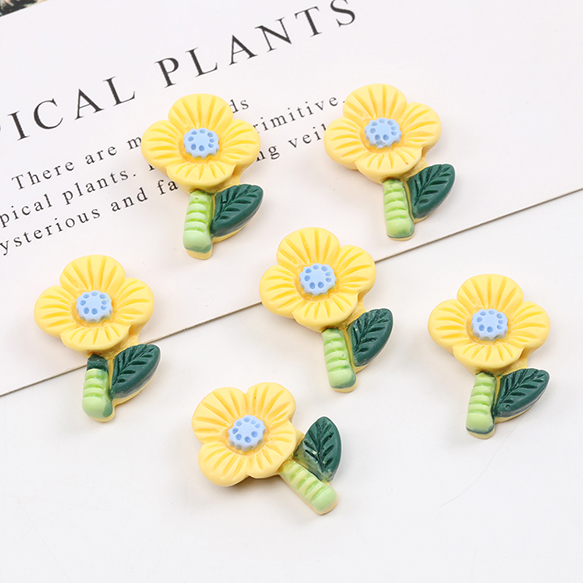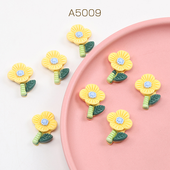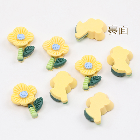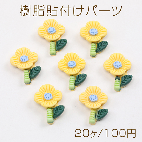 樹脂貼付けパーツ 樹脂カボション フロスト加工 フラワー イエロー 17×23mm(20ヶ)