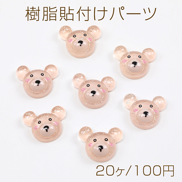 樹脂貼付けパーツ 樹脂カボション くま クマ ベア クリアカラー 16×21mm(20ヶ)