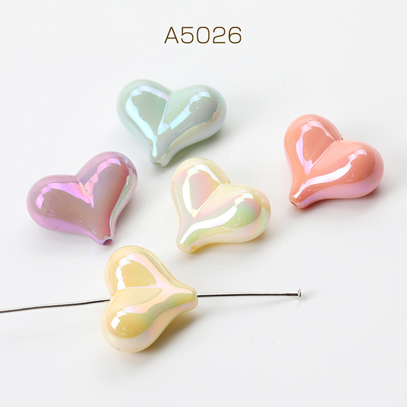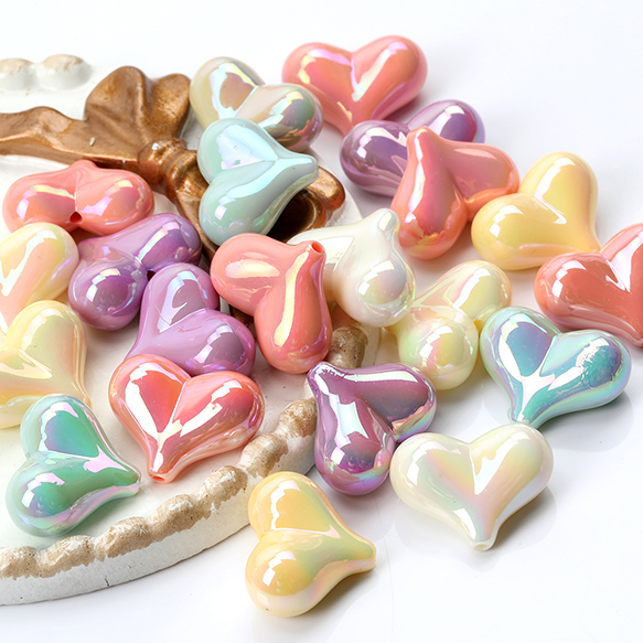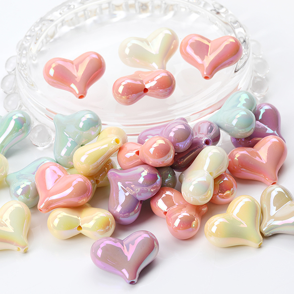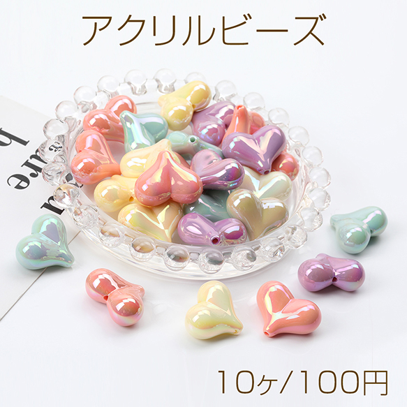 アクリルビーズ ハート型 メッキ加工 ミックスカラー 17×21mm(10ヶ)