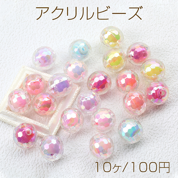アクリルビーズ ラウンドカット メッキ加工 ミックスカラー 16mm(10ヶ)