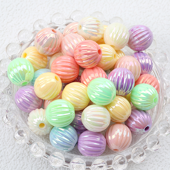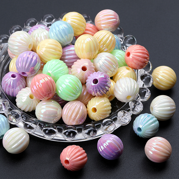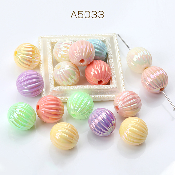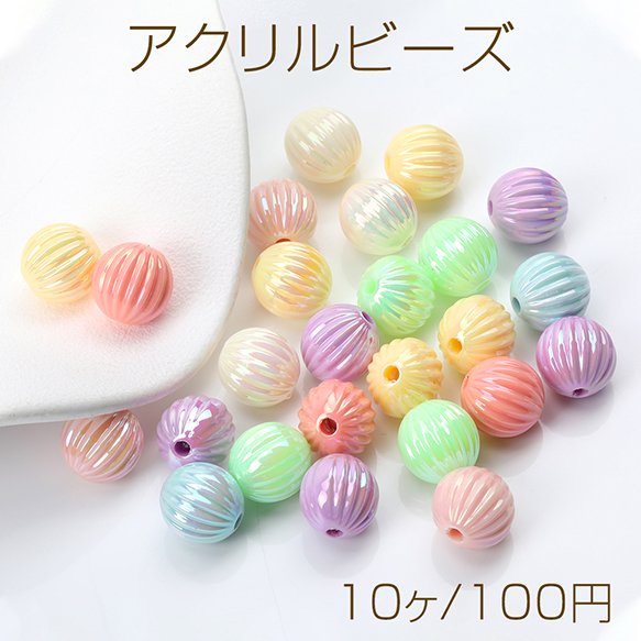 アクリルビーズ 筋入り丸玉 メッキ加工 ミックスカラー 14mm(10ヶ)