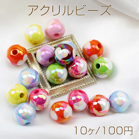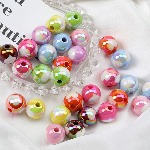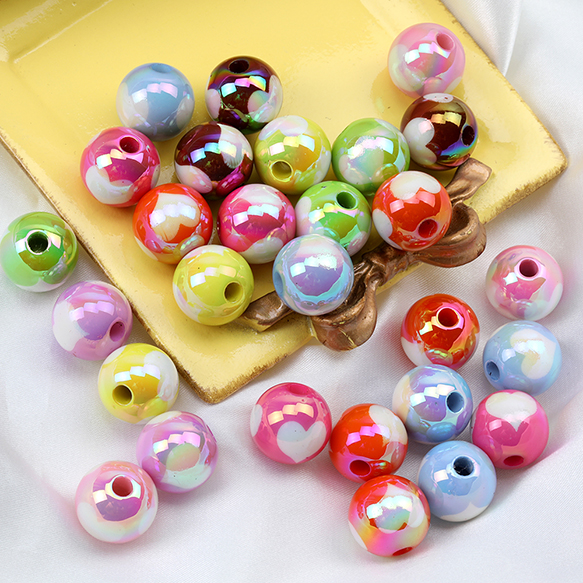 アクリルビーズ 丸玉 ハート型模様入り メッキ加工 ミックスカラー 16mm(10ヶ)