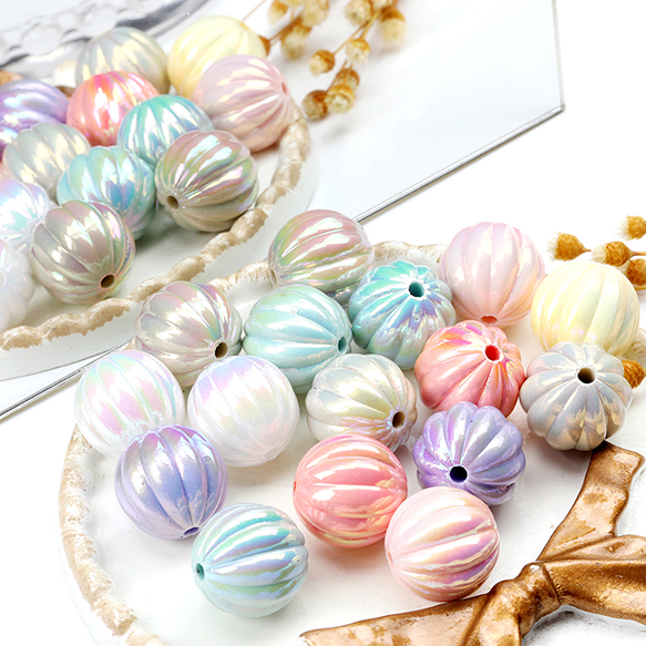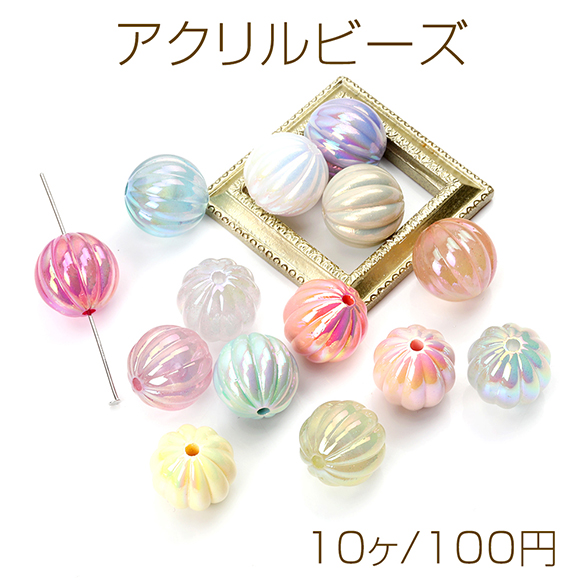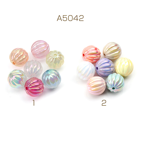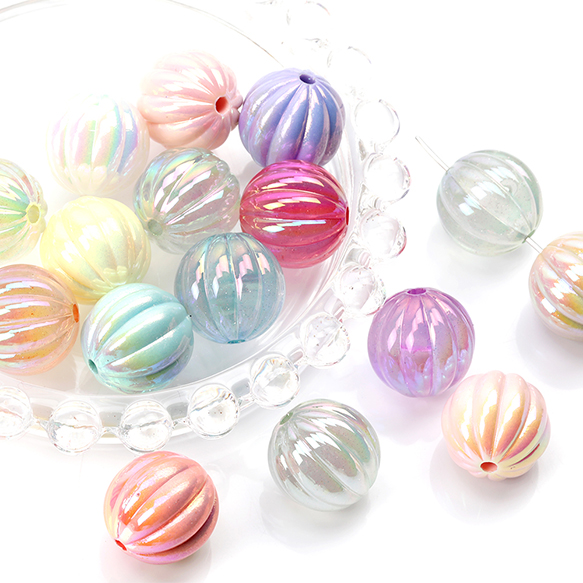 アクリルビーズ 筋入り丸玉 メッキ加工 ミックスカラー 16mm