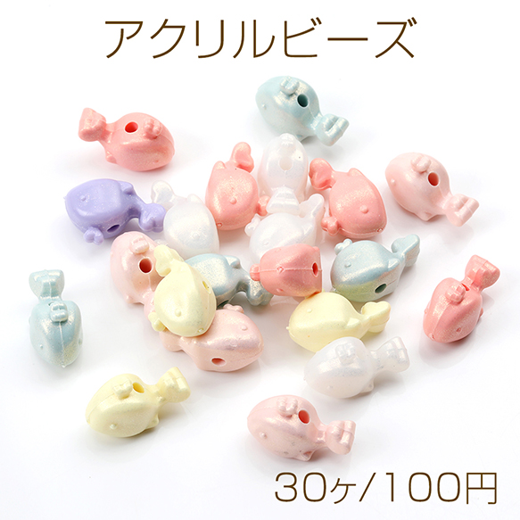 アクリルビーズ 魚 パステルカラー ミックスカラー 12×19mm(30ヶ)