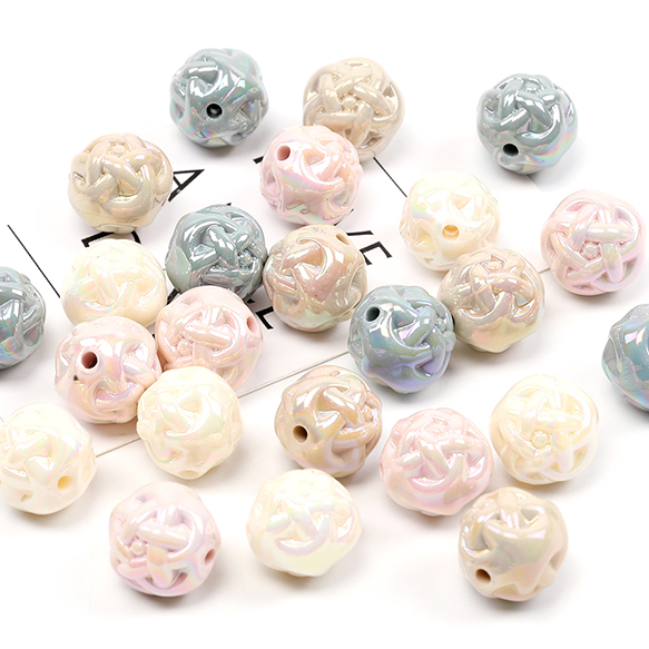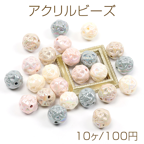 アクリルビーズ 模様入り丸玉 メッキ加工 15mm