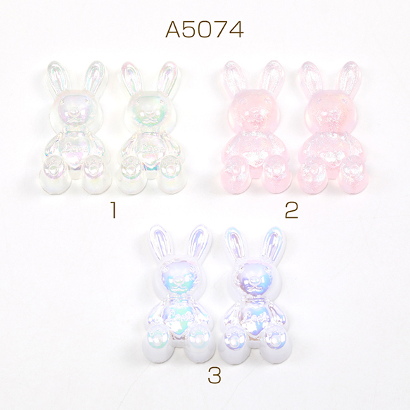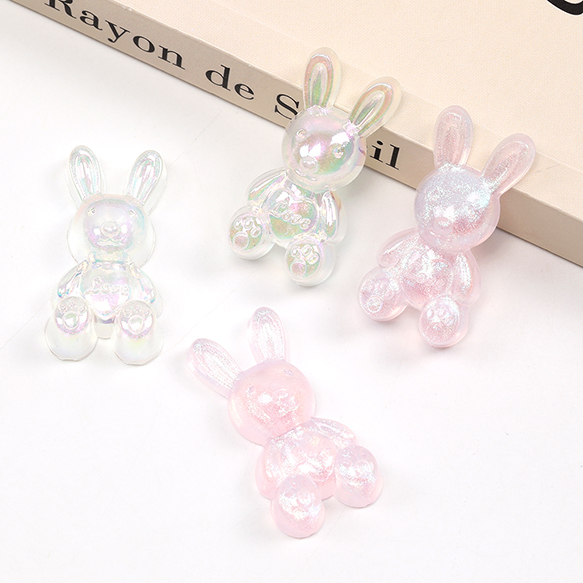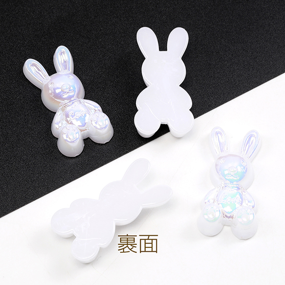 アクリル貼付けパーツ アクリルカボション うさぎ ウサギ オーロラカラー 19×37mm