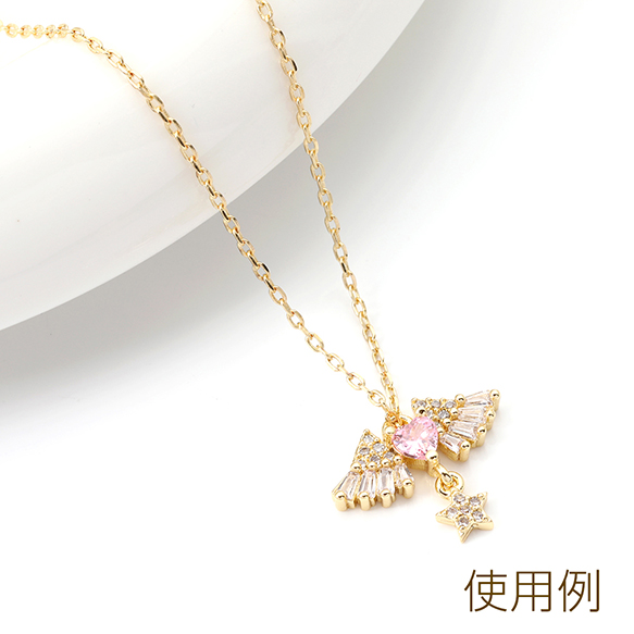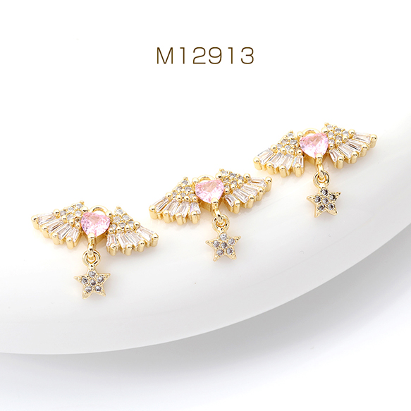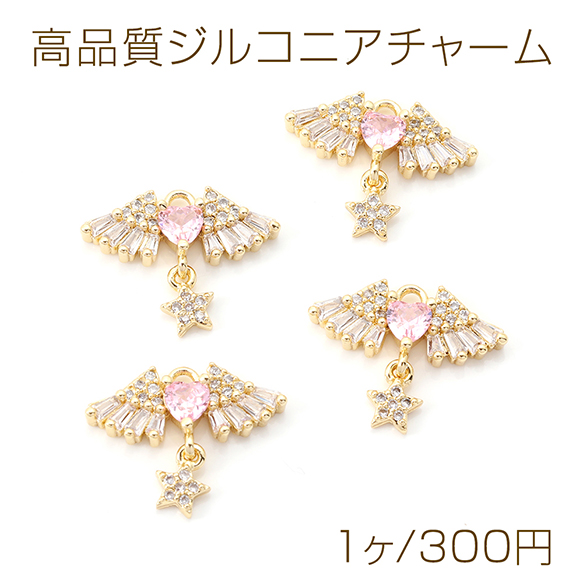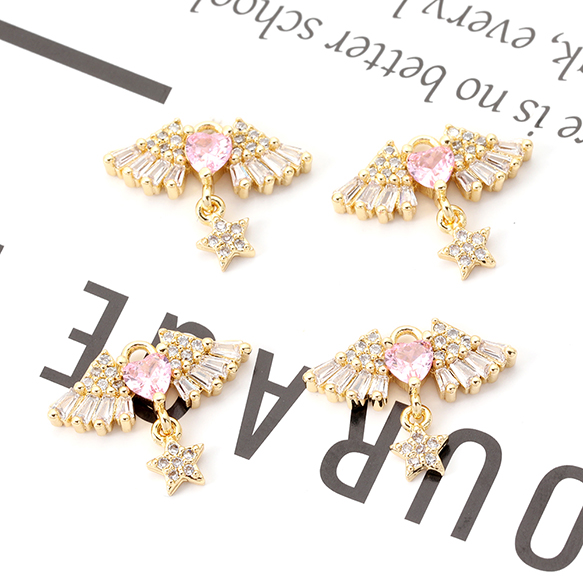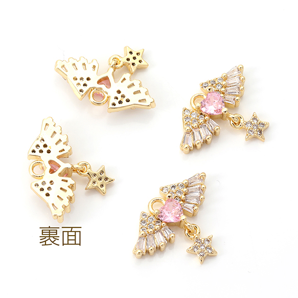 高品質ジルコニアチャーム 天使の羽とハート 星形付き ゴールド 14×18mm(1ヶ)