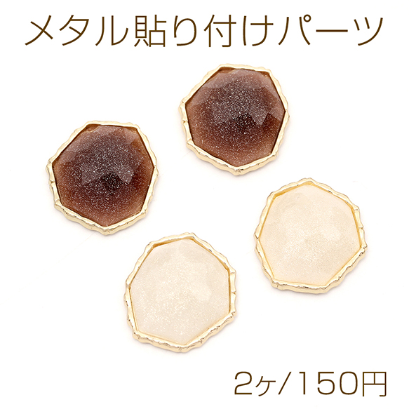 メタル貼り付けパーツ メタルカボション 不規則型 樹脂貼り 21×23mm(2ヶ)