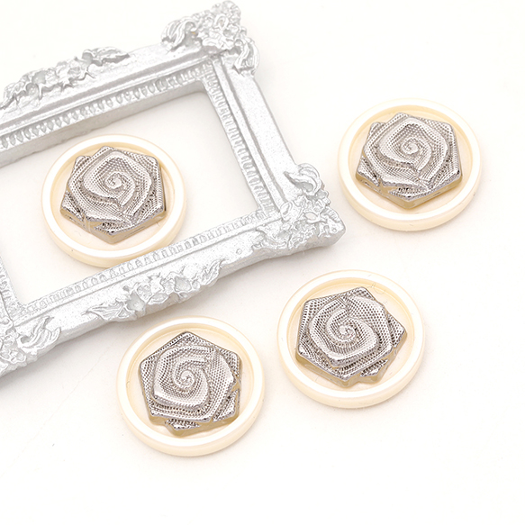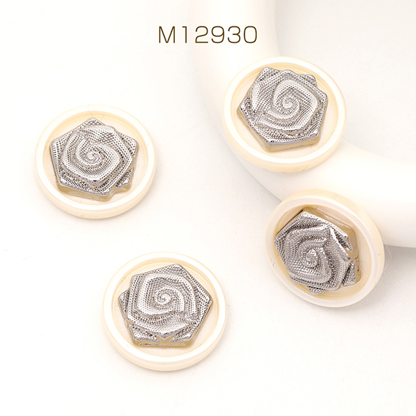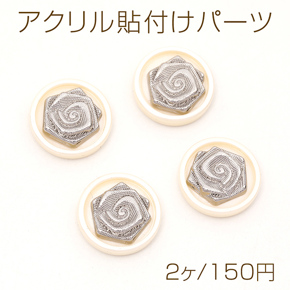 アクリル貼付けパーツ アクリルカボション ラウンド メタル貼り フラワー 18mm(2ヶ)