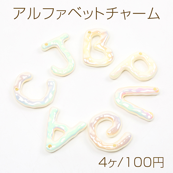 アルファベットチャーム アクリルチャーム 英文字 イニシャル ミックス オーロラカラー(4ヶ)