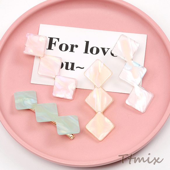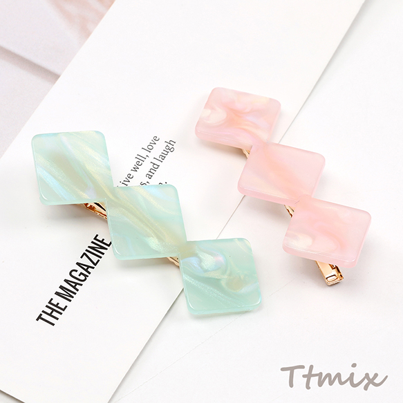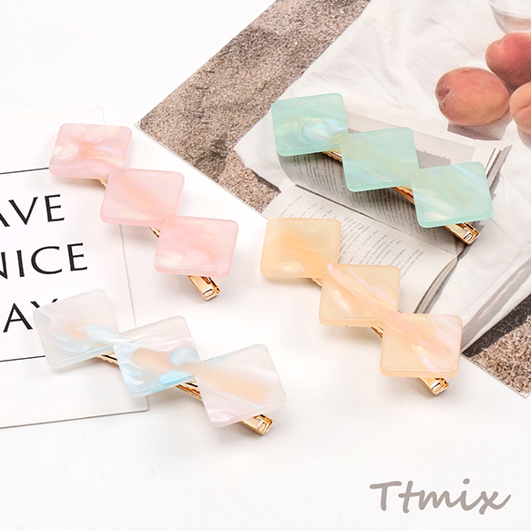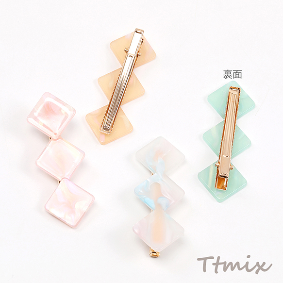ヘアクリップ メタルクリップ アセチ樹脂 3連ひし形 3連菱形 23×66mm