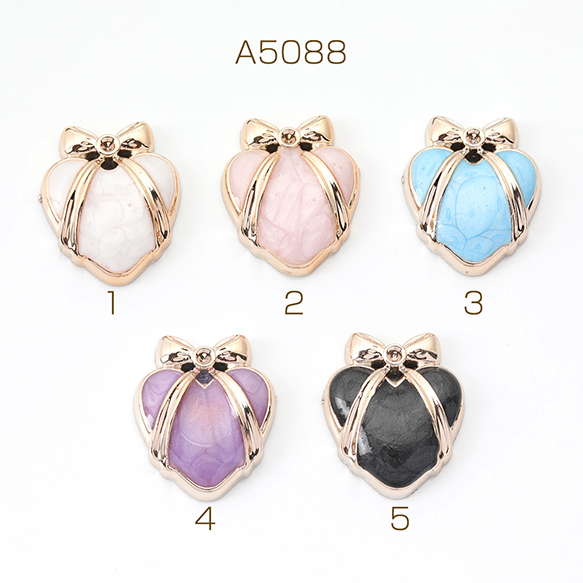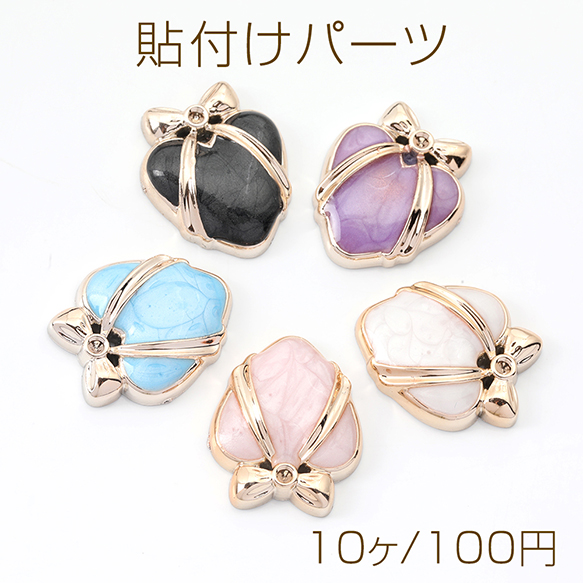 貼付けパーツ エポ貼付けパーツ エポカボション アクリル貼り付けパーツ アクリルカボション ハート型 リボン 19×23mm