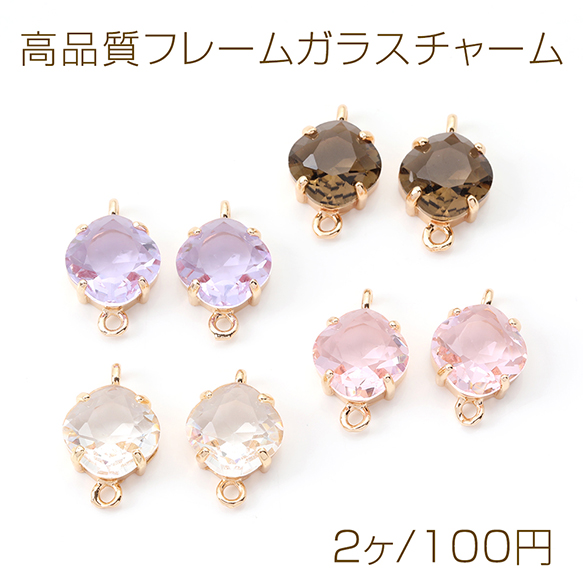 高品質フレームガラスチャーム ガラスストーンチャーム コネクターチャーム 接続パーツ 連結パーツ ひし形 菱形 2カン付き ゴールド 11×17mm(2ヶ)