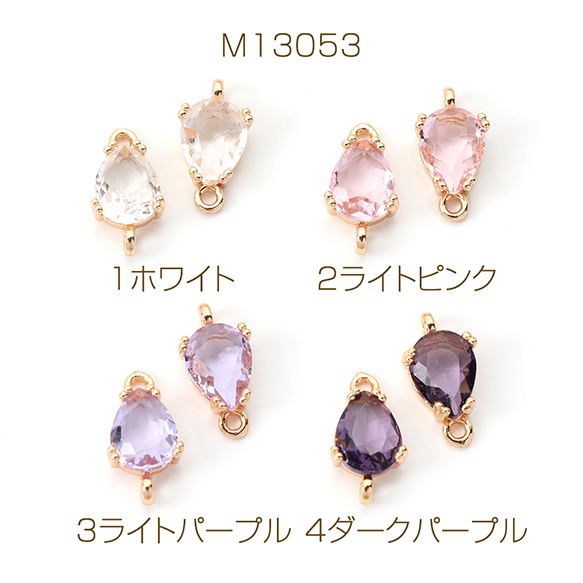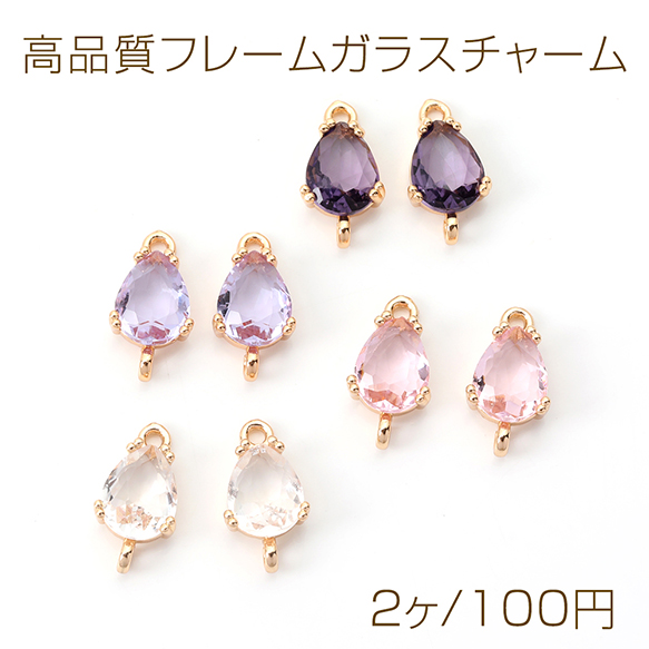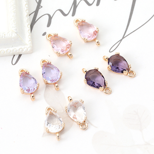 高品質フレームガラスチャーム ガラスストーンチャーム コネクターチャーム 接続パーツ 連結パーツ しずく型 雫型 ドロップ 2カン付き ゴールド 7×13mm(2ヶ)