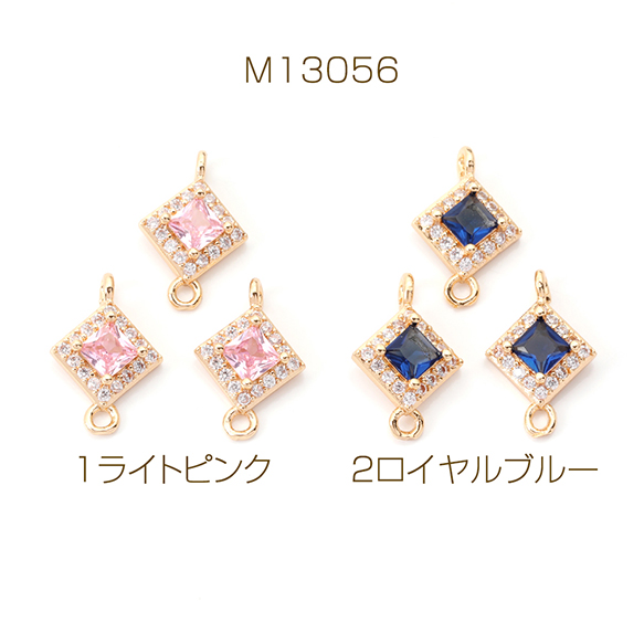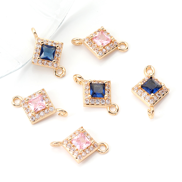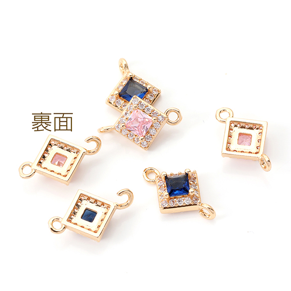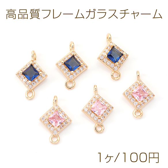 高品質フレームガラスチャーム ジルコニアストーンチャーム ガラスストーンチャーム コネクターチャーム ひし形 菱形 2カン付き ゴールド 10×16mm(1ヶ)