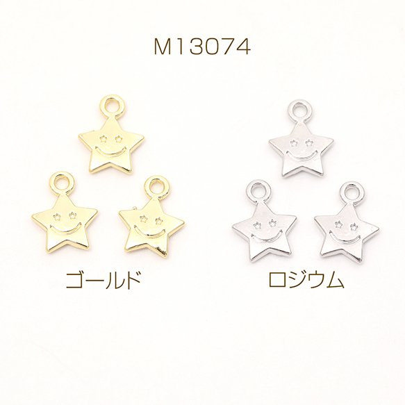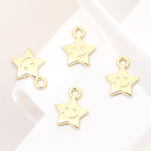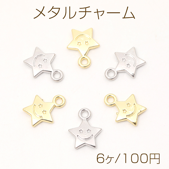 メタルチャーム 星形 星型 スター スマイル 1カン付き 9×11mm(6ヶ)