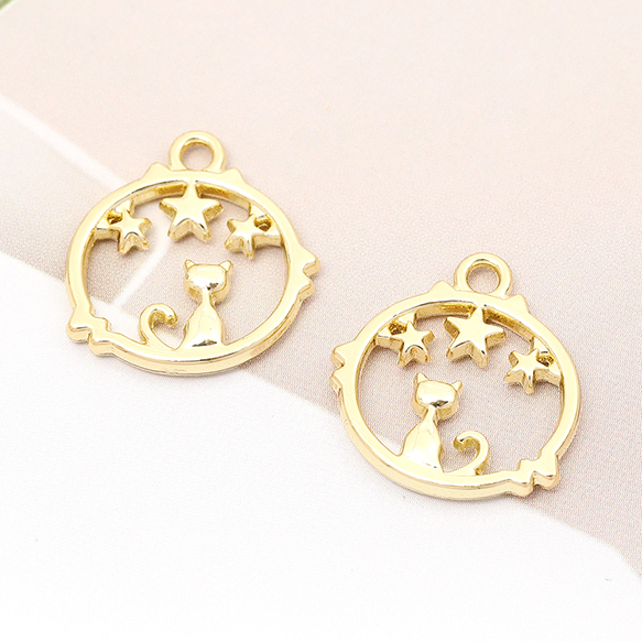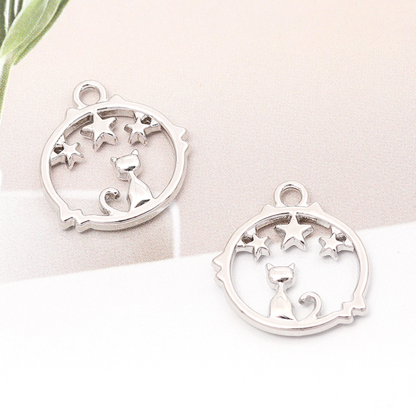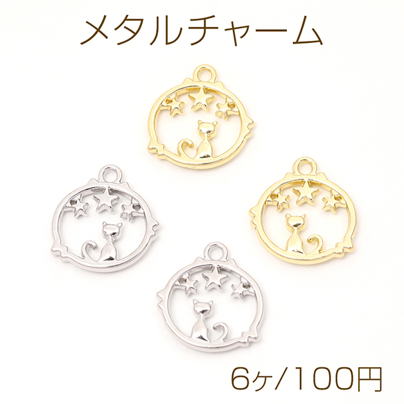 メタルチャーム 星形 星型 スター 猫 ネコ ねこ キャット ネコちゃん 猫ちゃん 1カン付き 17×18mm(6ヶ)