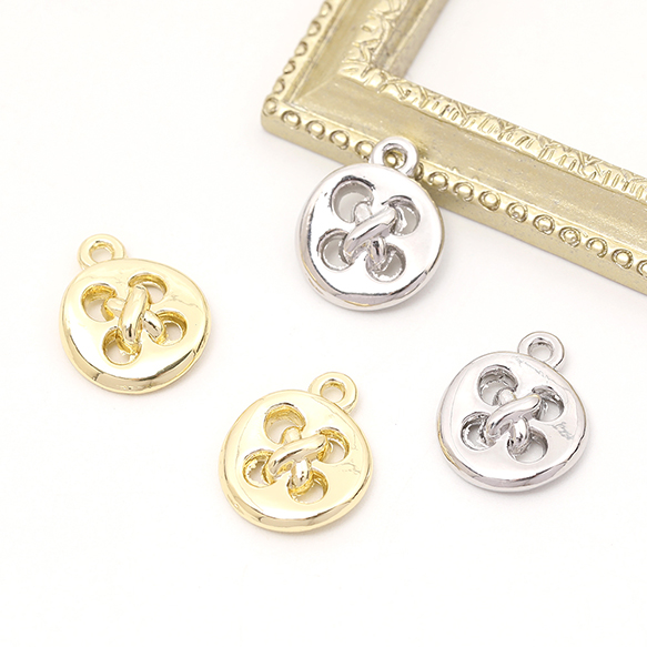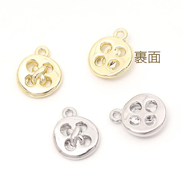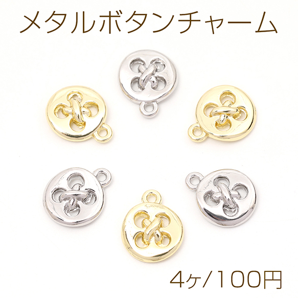 メタルボタンチャーム メタルチャーム ボタン型 1カン付き 11×14mm(4ヶ)