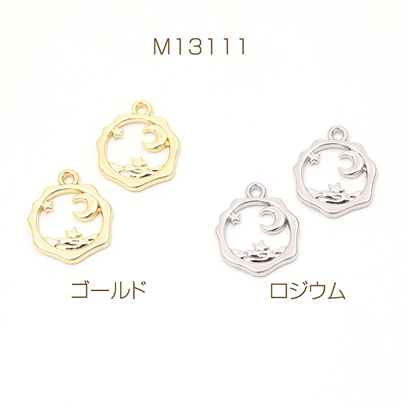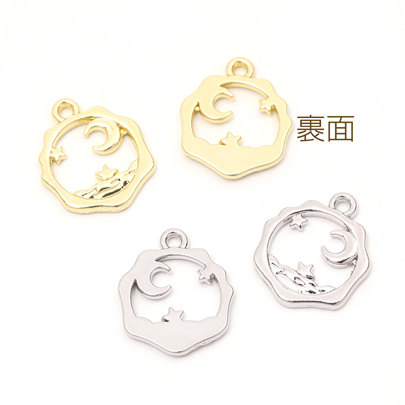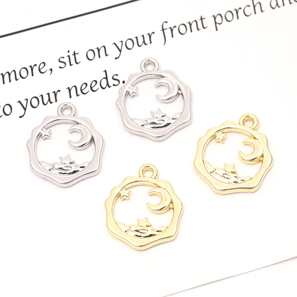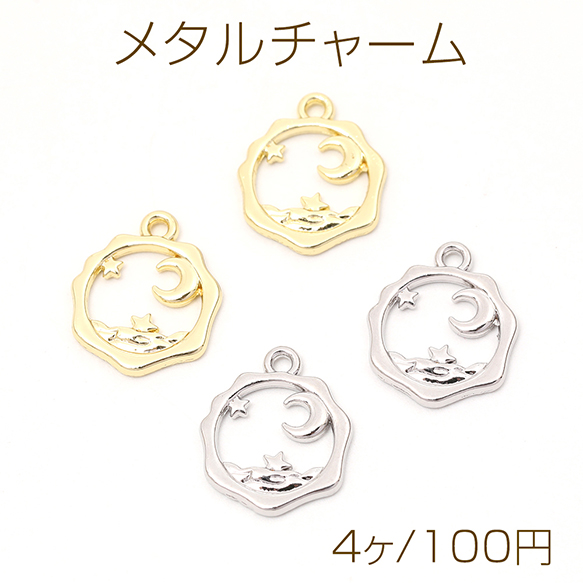 メタルチャーム 星と月 1カン付き 14×17mm(4ヶ)