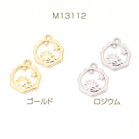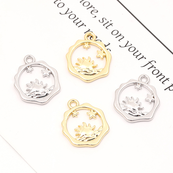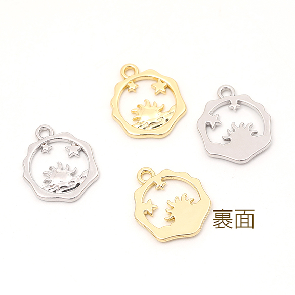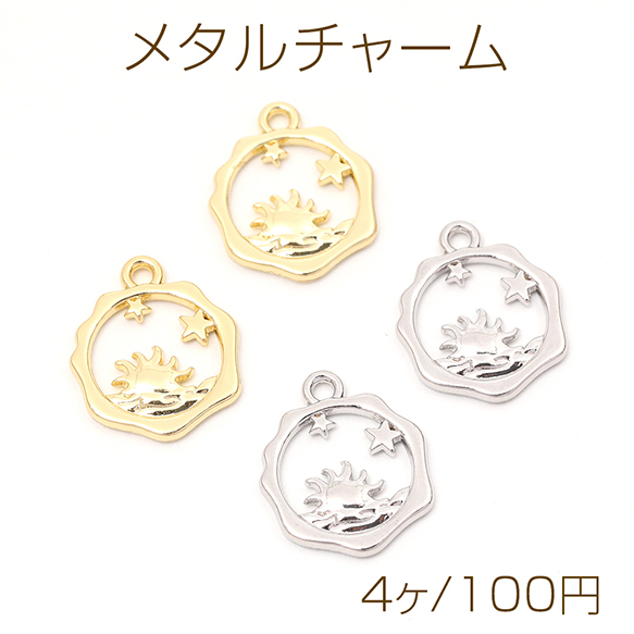 メタルチャーム 星と太陽 1カン付き 14×17mm(4ヶ)