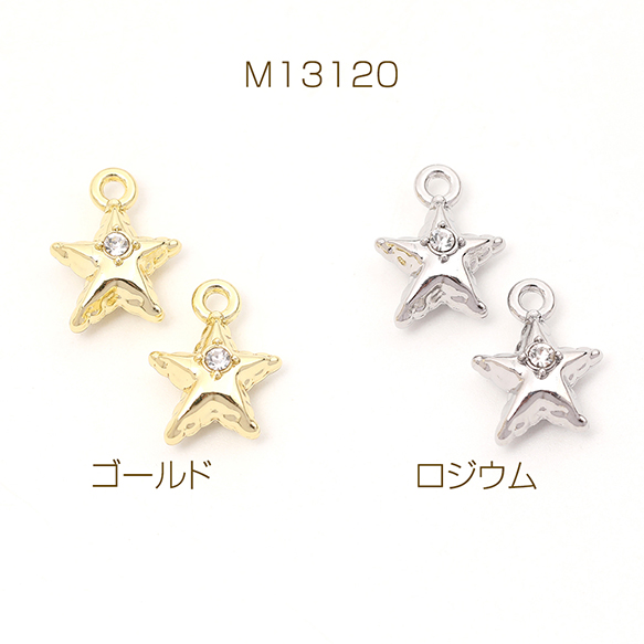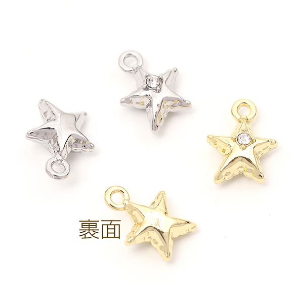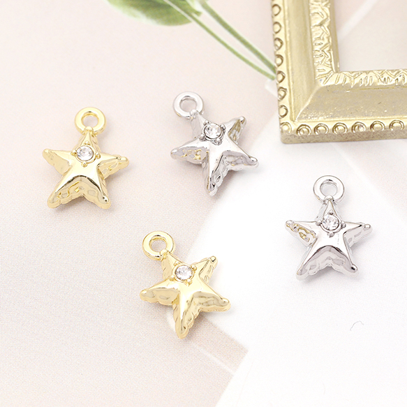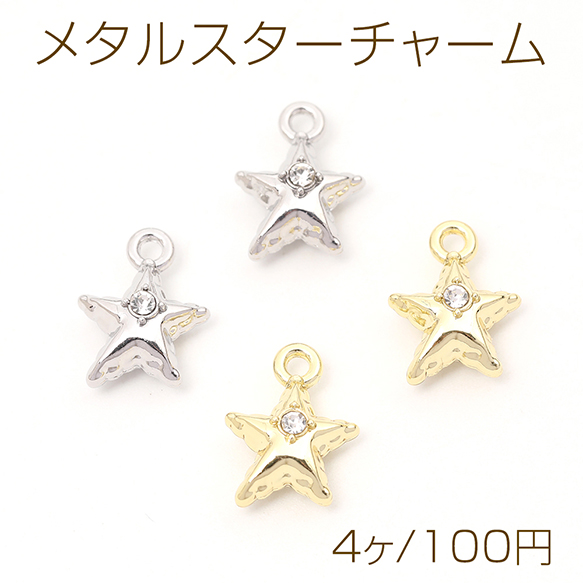 メタルスターチャーム メタルチャーム 星形 星型 スター ラインストーン付き 1カン付き 10×13mm(4ヶ)