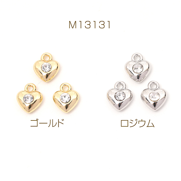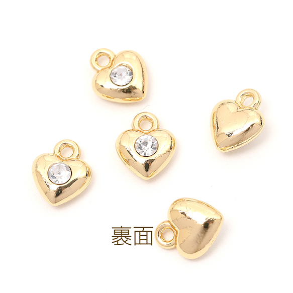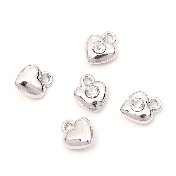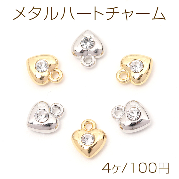 メタルハートチャーム メタルチャーム ハート型 ラインストーン付き 1カン付き 7×8mm(4ヶ)