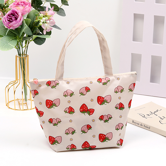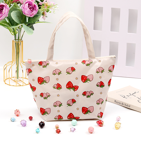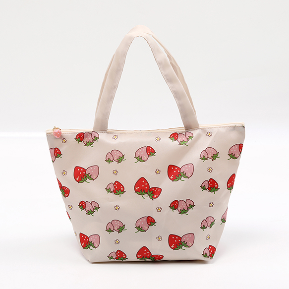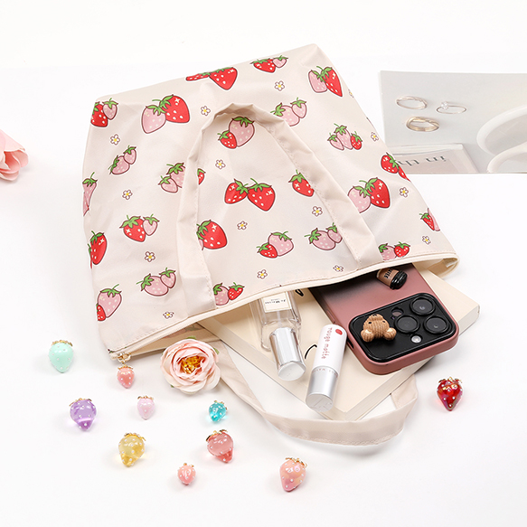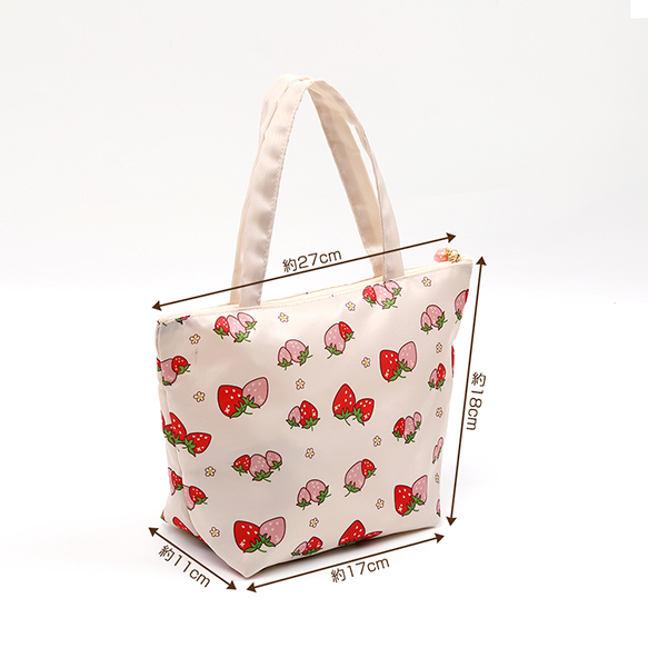 いちご柄トートバッグ フナガタトートバッグ いちごモチーフ 苺柄プリント デイリートートバッグ フナガタ 舟形トートバッグ 収納バッグ