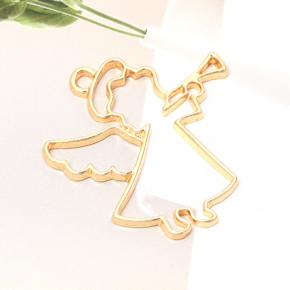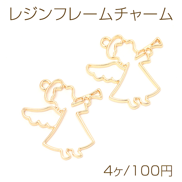 レジンフレームチャーム エンジェル 天使 1カン付き ゴールド 35×38mm(4ヶ)